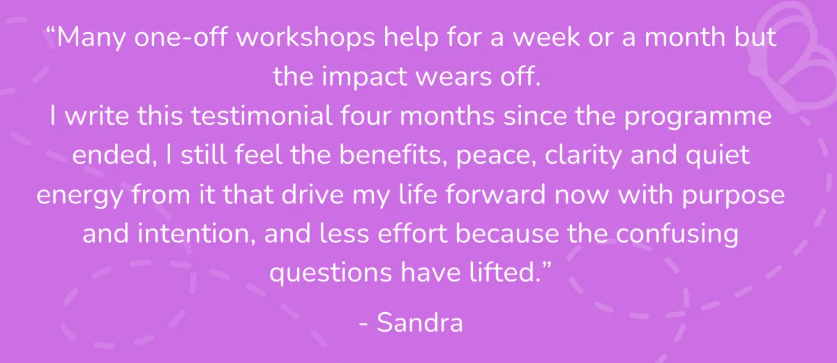 The programme starts on Friday 13th September, with the session starting at 1.00pm BST. You'll meet fortnightly until the programme ends. You'll be guided and supported throughout the programme by the award winning mindset coach and psychologist, Dr Victoria Stakelum.